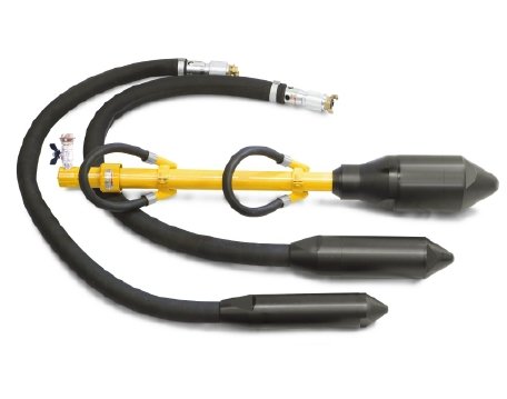 Pneumatic deep vibrators create vibrations with an impact force of over 70 kilograms. The piston pneumatic vibrator has an adjustable frequency, amplitude, provides a low noise level and a minimum amount of air consumed.